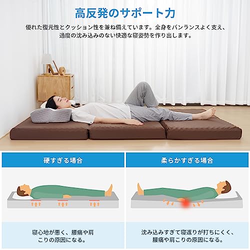 HOMFINE 高反発マットレス シングル 三つ折り 極厚10cm おりたたみマットレス 高反発 ベットマット 敷き布団 凹凸加工 体圧分散 程良い硬さ 抗菌防臭 洗えるカバー 通気性がよい オールシーズン 97x195x10cm ブラウン