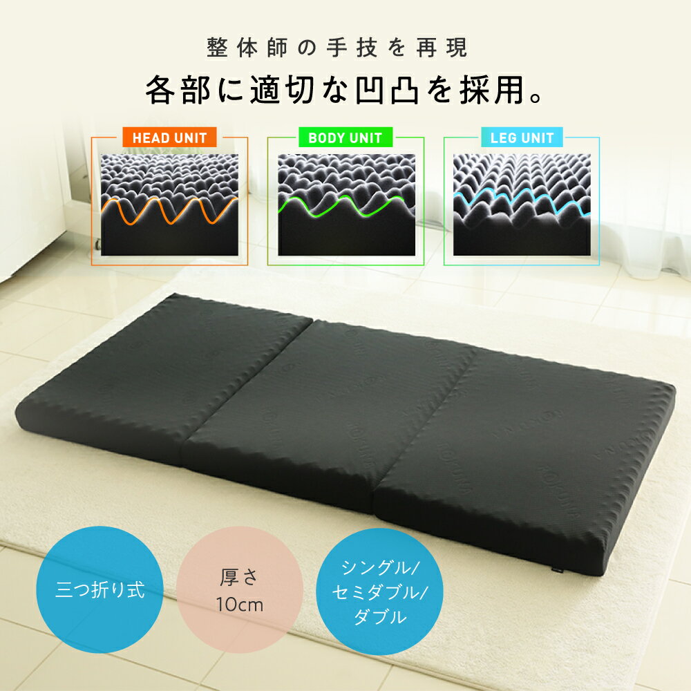 【 Medical Mattress メディカルマットレス ダブル RAKUNA ( ラクナ )】 腰が軽~くなる 高反発マットレス 10cm シングル セミダブル ダブル 3つ折り 高反発 整体師監修 折り畳み 骨盤 サポート 腰痛 肩こり