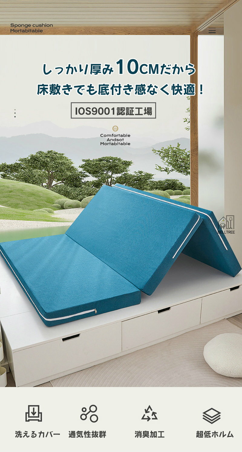 マットレス 高反発 シングル 敷布団 三つ折り 高反発マットレス 極厚10cm 9cm 6cm 2タイプ シングル セミダブル ダブル 折り畳み ベッドマットレス シングルマットレス 高反発ウレタン 折りたたみマットレス 洗えるカバー 4colors 急に来客用 抗菌 防臭 3つ折り 湿気対策
