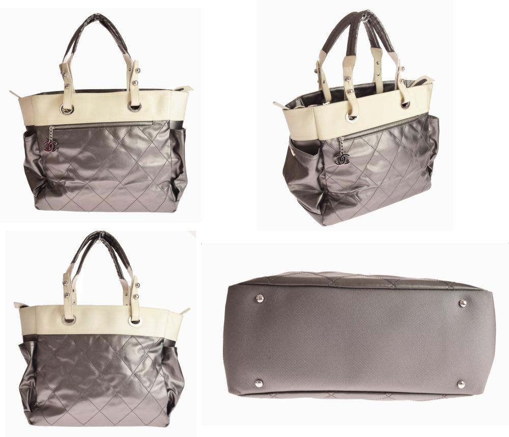 【中古】CHANEL シャネル パリビアリッツ トートGM A34210 シルバー/ホワイト トートバッグ