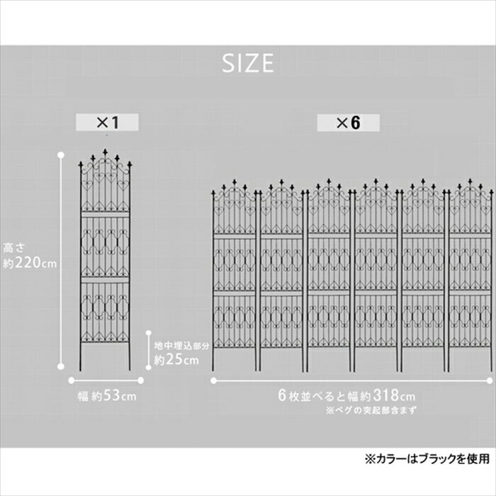 【12H限定P5倍】ガーデンフェンス 庭 フェンス トレリス アイアン 目隠し 外構 diy おしゃれ 柵 埋め込み エクステリア 薔薇 つる 誘引 220 WH 6枚組