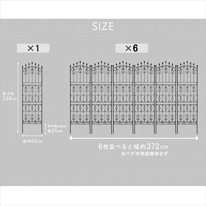 【12H限定P5倍】ガーデンフェンス 庭 フェンス トレリス アイアン 刺すだけ 外構 アイアンフェンス バラ 誘引 アンティーク調 薔薇 つる 目隠し diy おしゃれ 柵 埋め込み エクステリア 220 DB 6枚組
