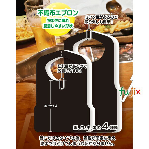 商品名 業務用 不織布エプロン 白 小 サイズ 390×580mm 入り数 2000枚(25枚×80袋)/1ケース 用途 焼き肉、ハンバーグ屋さん、介護など、服汚れ防止のため、ご利用ください。