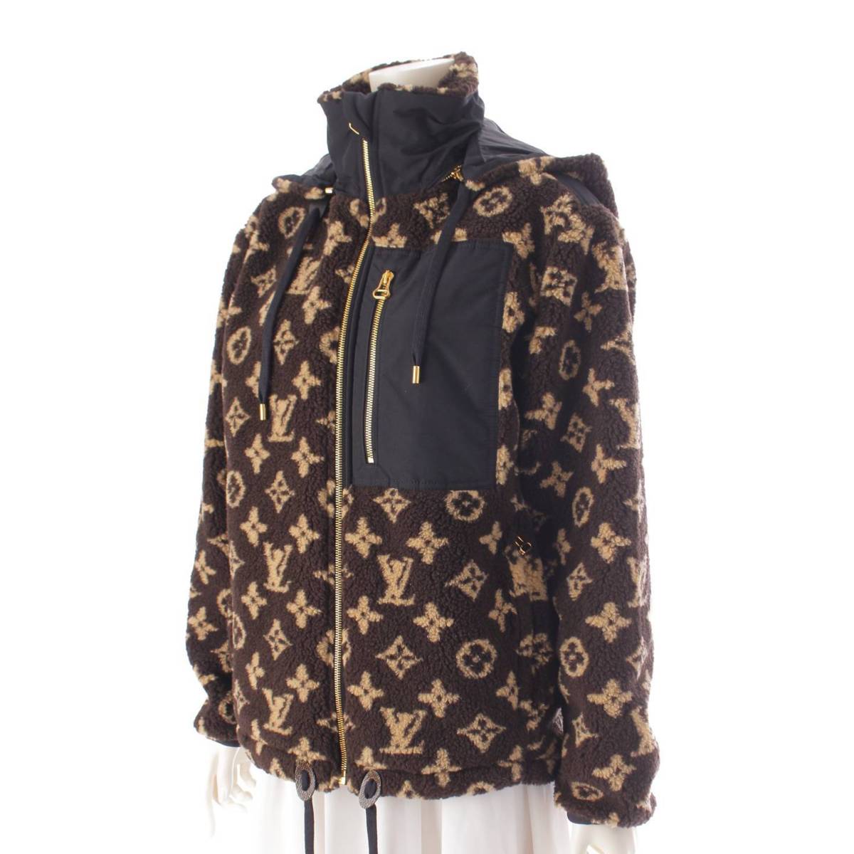 【ルイヴィトン】Louis Vuitton 23AW モノグラム フリースパーカー ボアジャケット 1AAKAU ブラウン 34 【中古】【鑑定済・正規品保証】201158