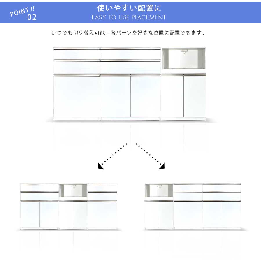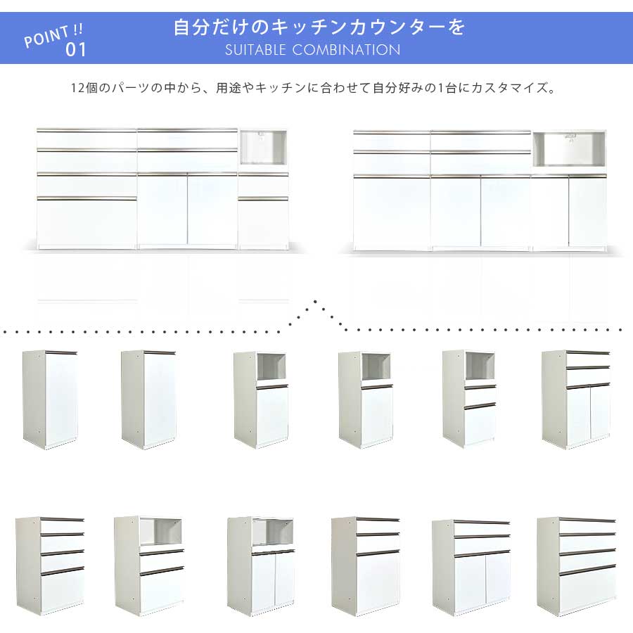 【10%OFFクーポン】キッチンカウンター 幅200 お好きな組み合わせが出来るユニットタイプ 日本製 間仕切り ゴミ箱収納 ホワイト レンジ台 高さ100cm レンジ台 ワイド モダン 汚れに強