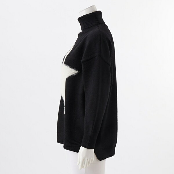 [型番:S32904]フロントの大きな星柄がかわいいミドル丈タートルネックセーターです。