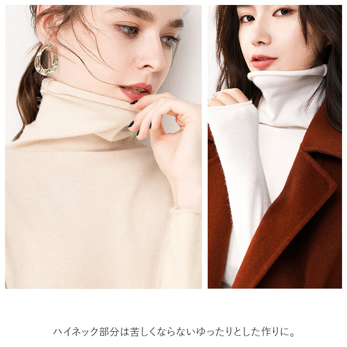 レディース ニット セーター 定番 ハイネック 長袖 洗える タートルネック ショート丈 軽量 伸縮性 滑らか シンプル 大きいサイズ 肌着 普段着 保温 リブニット ハイゲージ