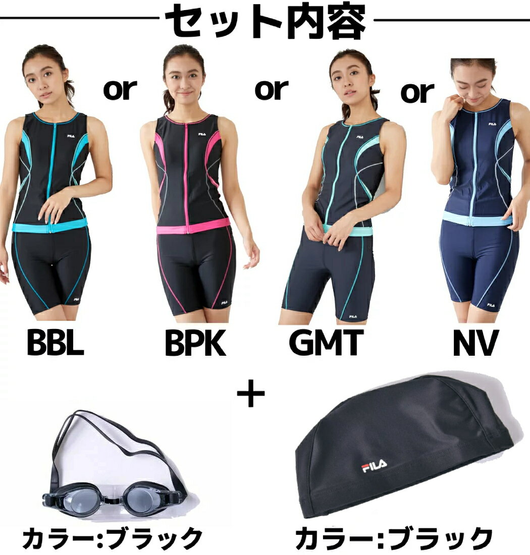 【大きいサイズ】フィラ FILA フィットネス水着 選べる3点セット ゴーグル スイムキャップ付き レディース セパレート タンキニ タンクトップ ボトムス 水着セット フィットネス 水泳 LLサイズ プール スイミング 311202