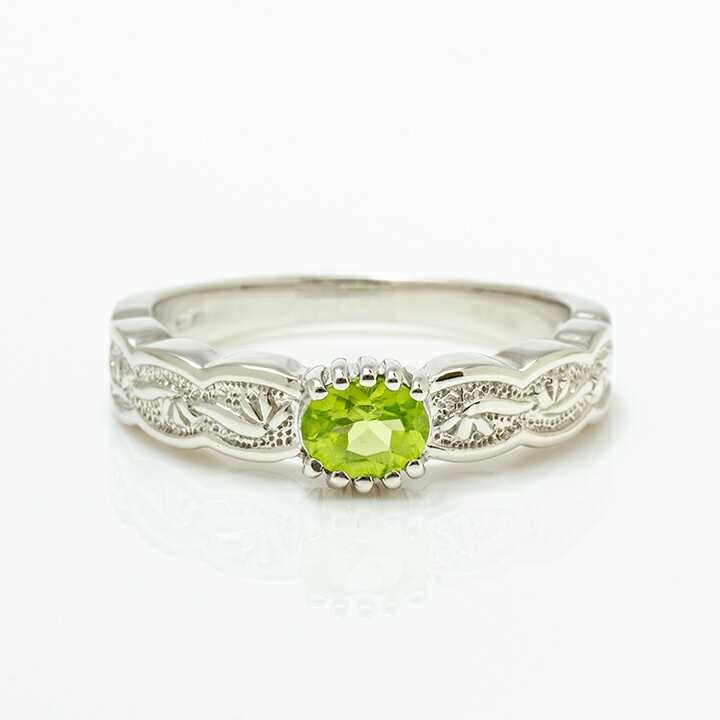 ⇒ 同じデザインの石違いシリーズはこちら ⇒ 選べる無料ラッピング MR-1646クラシカルに装う SV925 ペリドット リング 植物をモチーフにした彫刻品のよう Design 前向きな明るさで元気を与えてくれる 遥か昔の時代を思わせる…。