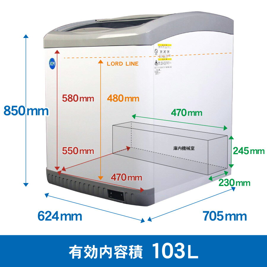 JCM 冷凍ショーケース JCMCS-100L 業務用 冷凍 冷凍庫 保冷庫 ショーケース スライド LED照明付 103L 幅624×奥行705×高さ850mm ノンフロン 結露対策 一年保証 【代引不可】【期間限定キャンペーン】