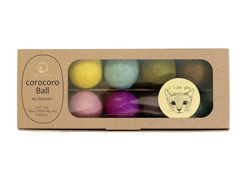 necono 猫 ねこ おもちゃ ボール 『フェルトボール コロコロボール 8個入り』 ウール100% ひとり遊び 安全 ピンク カーキ ブラウン パープル 水色 あずき グレー イエロー 雑貨 誕生日 猫グッズ プレゼント