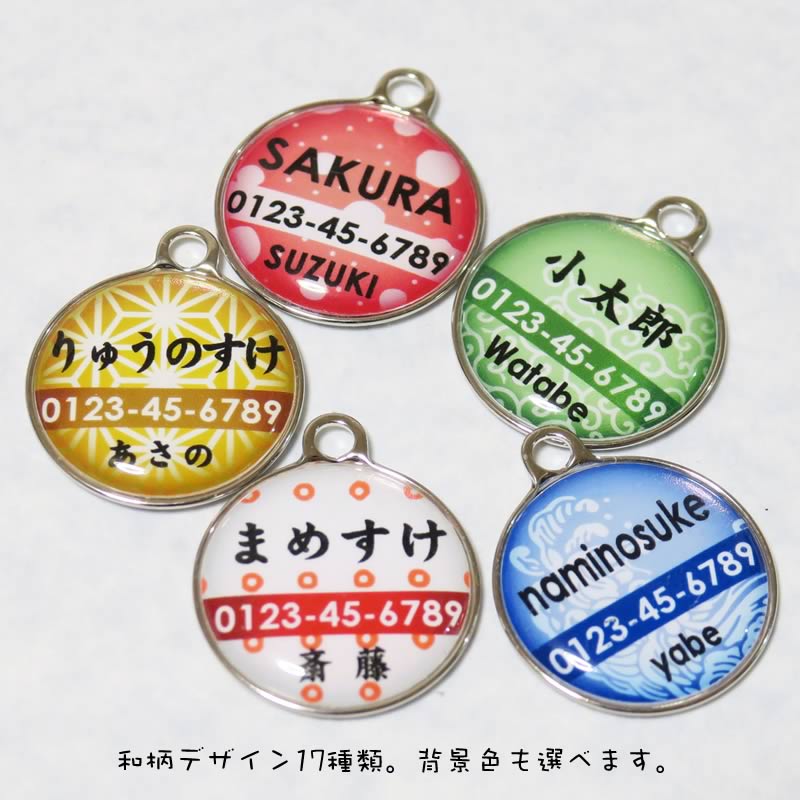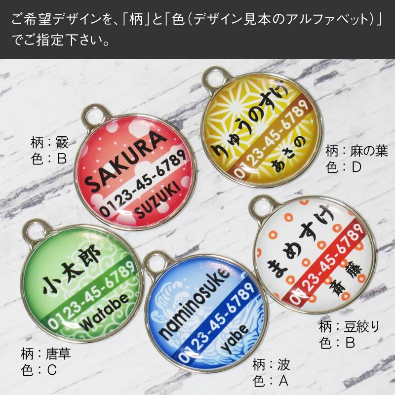 迷子札(和柄) 犬 猫 グッズ 雑貨 名札 ペット おしゃれ ネームプレート 和風 唐草 波 肉球 雲 桜 麻の葉 霞 市松 籠目 七宝 青海波 花菱 豆絞り 立涌 三崩し 鋸歯 雪輪 オーダーメイド プレゼント