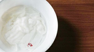 商品が届いたときには糊でカチカチに固まっているので必ずご利用前には、水やお湯につけて揉み洗いを行い、付着した糊を落としてください。