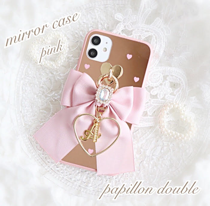 ↑ 多色のリボン・26文字のアルファベット・イニシャル・チャームから選べる ●【送料無料】スマホケース 携帯ケース リボン カラー ビジュー ゴールド シルバー パーツ 選べる オリジナル 誕生日 記念 結婚祝い プレゼント ギフト ライブ コンサート アイテム 可愛い 大人可愛い ゆめかわいい エレガント おしゃれ キラキラ 女の子 子供 スマホケースもファッションの一部の時代に女の子の大好きが詰まったオリジナルオーダーケース・リボン・ホルダー・リング・ビジュー・チャーム iPhone6 iPhone6s iPhone7 iPhone8 iPhoneSE2 iPhone7Plus iPhone8Plus iPhoneX iPhoneXs iPhoneXsMax iPhoneXR iPhone11 iPhone11Pro iPhone11ProMax iPhone12mini iPhone12 iPhone12pro iPhone12promax ♡自分色に選べるから満足感に満たされる♡ 商品名 パピヨンダブル ハートフープ iPhone ミラーケース クリアケースセット サイズ ケース: ミラーピンク ミラーブラック リボン:厚み約0.3mm ホルダー:縦24mm 横25mm リング:外径25mm 内径17mm 素 材 ケース:ソフトタイプ 透明 メッキ塗装枠 リボン: ポリエステル100% グログラン ホルダー:ステンレス・メッキ塗装 リング:ステンレス・メッキ塗装 ビジュー: 合金 カラー シェルピンク シェルホワイト 適合機種 iPhone6/6s、 iPhone7/8、 iPhone7/8Plus、 iPhoneX/Xs、 iPhoneXR、 iPhone11、 iPhone11Pro、 iPhone11ProMax 備 考 入荷状況や写真撮影などにより実際の色と相違する場合がありますので予めご理解のほどよろしくお願いします。