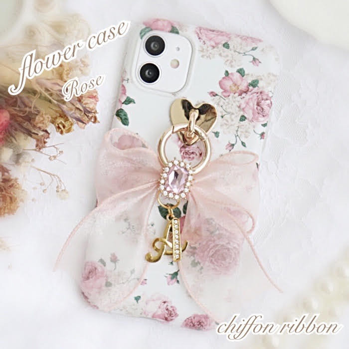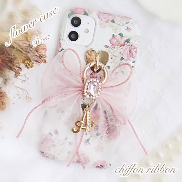 シフォンリボン イニシャル フラワーケース iphoneケース オーダーメイド iphone12 Pro ProMax X Xs XR iphone11 iphone8 Plus iphoneSE2 ケース 韓国 シンプル おしゃれ かわいい 人気 リング スマホケース リボン ソフト 耐衝撃【送料無料】