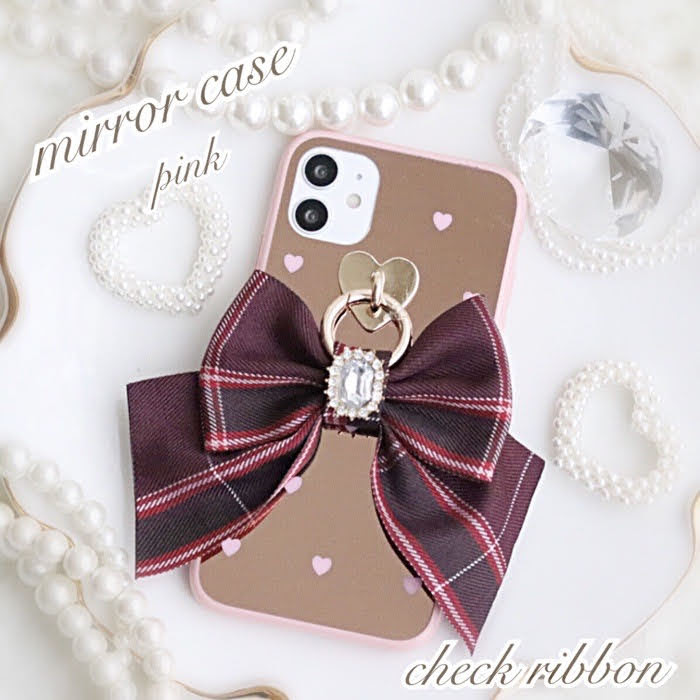 チェックリボン iPhone ミラーケース 多色のリボン・26文字のアルファベット・イニシャル・チャームから選べる ●【送料無料】スマホケース 携帯ケース リボン カラー ビジュー ゴールド シルバー パーツ 選べる オリジナル 誕生日 記念 結婚祝い プレゼント ギフト ライブ コンサート アイテム 可愛い 大人可愛い ゆめかわいい エレガント おしゃれ キラキラ 女の子 子供 スマホケースもファッションの一部の時代に女の子の大好きが詰まったオリジナルオーダーケース・リボン・ホルダー・リング・ビジュー・チャーム iPhone6 iPhone6s iPhone7 iPhone8 iPhoneSE2 iPhone7Plus iPhone8Plus iPhoneX iPhoneXs iPhoneXsMax iPhoneXR iPhone11 iPhone11Pro iPhone11ProMax iPhone12mini iPhone12 iPhone12pro iPhone12promax ♡自分色に選べるから満足感に満たされる♡ 商品名 チェックリボン iPhone ミラーケース 目を引くフルオーダーのオリジナルケース サイズ ケース: リボン:厚み約0.3mm ホルダー:縦24mm 横25mm リング:外径25mm 内径17mm 素 材 ケース:ソフトタイプ 透明 メッキ塗装枠 リボン: ポリエステル100% グログラン ホルダー:ステンレス・メッキ塗装 リング:ステンレス・メッキ塗装 ビジュー: 合金 カラー ミラーピンク、 ミラーブラック、 適合機種 iPhone6/6s、 iPhone7/8、 iPhone7/8Plus、 iPhoneX/Xs、 iPhoneXR、 iPhone11、 iPhone11Pro、 iPhone11ProMax iPhone12mini iPhone12 iPhone12pro iPhone12promax 備 考 入荷状況や写真撮影などにより実際の色と相違する場合がありますので予めご理解のほどよろしくお願いします。