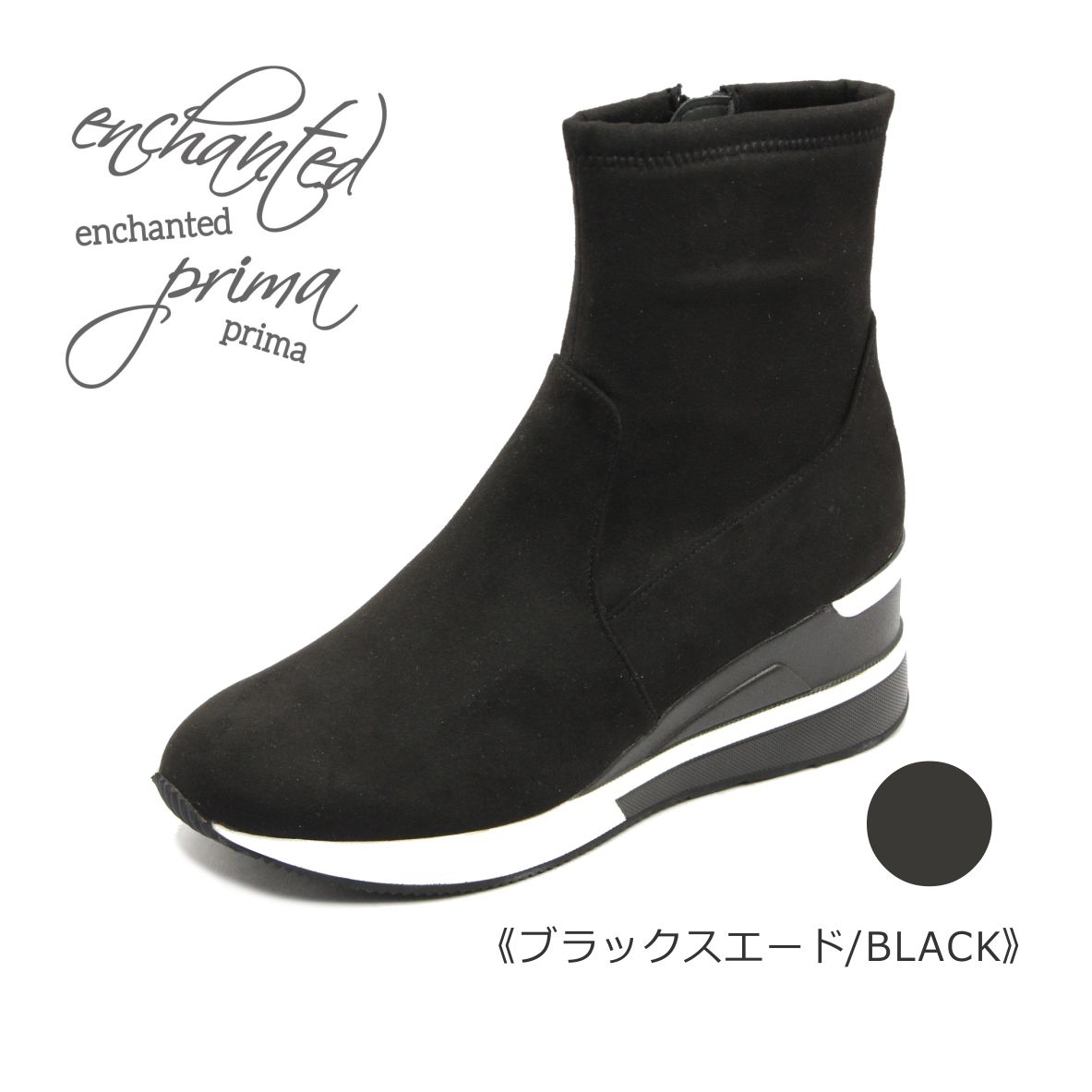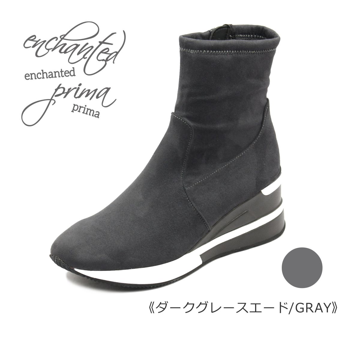 enchanted エンチャンテッド レディース ブーツ 21211 ショート ストレッチ 厚底 靴 黒 ブラック グレー スエード