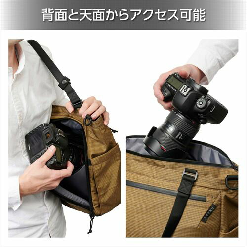 [SPECTRA×CORDURA]高機能素材を採用し、インナーを外しても使用できる街使い派ショルダーバッグ【商品仕様】内寸法:約W350×H300×D150mmインナーケース内寸法:約W245×H190×D120mmPC収納部参考収容寸法:約W325×H230×D15mm外寸法:約W370×H330×D160mm重量:約900g材質:SPECTRA×CORDURAナイロン、ポリエステル、PVC付属品:カメラインナーケース、中仕切り×2、三脚固定ストラップ×2、ショルダーベルト備考:ご購入時、三脚固定ストラップはフロントポケットに収納されています。