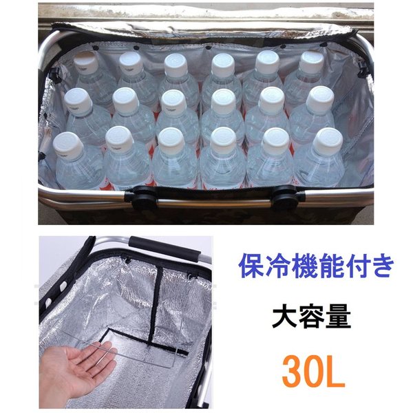 保冷・保温 機能付き 30L 折りたたみ式 エコバッグ【F-215-21】大容量 バスケット 買い物かご 断熱バッグ屋外 ピクニック