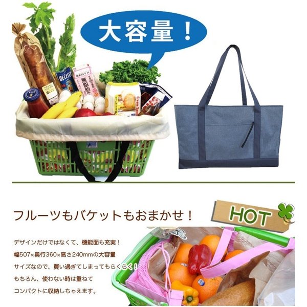 袋詰め不要!お洒落なデニム調デザイン レジかごバッグ エコバッグ 大容量 30L 買い物かご 折りたたみ 保冷バッグ F-223-02