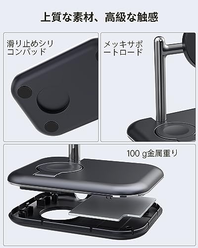 台座表面の充電位置は折り畳み可能,いずれもマグネット充電です。