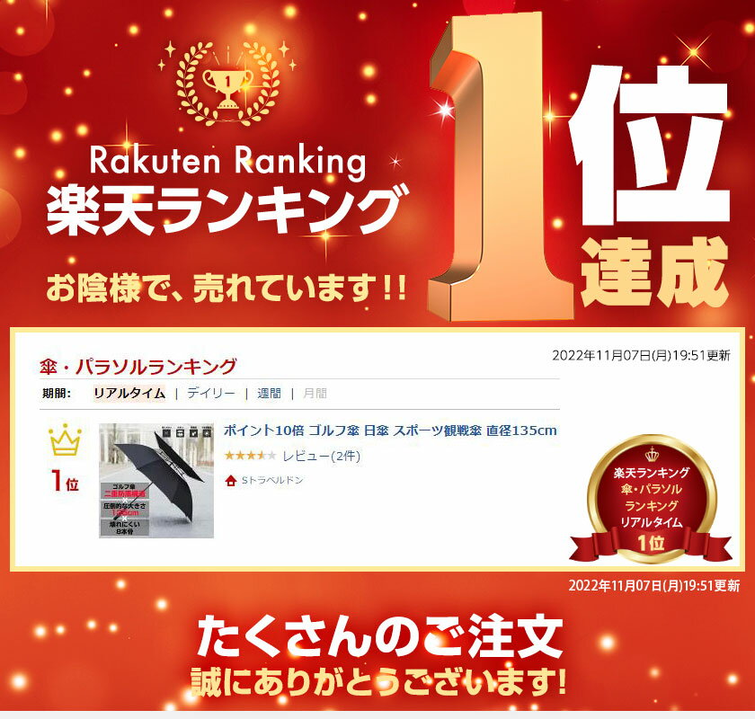 ポイント10倍 【楽天ランキング1位】 ゴルフ傘 日傘 スポーツ観戦傘 直径135cm 8本骨 ゴルフ用傘 スポーツ観戦 雪 傘 長傘 大型傘 アウトドア用品 晴雨併用 男女兼用 大きい 雨具 実用的 ゴルフ 観戦 暴風