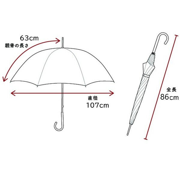 品名:アンブレラ (晴雨兼用) 品番:3033B329 色番:400 サイズ 全長:約86cm 直径:107cm 重さ:461g 親骨の長さ:63cm ※当店にて手で計測しているため、商品によっては若干の誤差が生じる可能性があります。