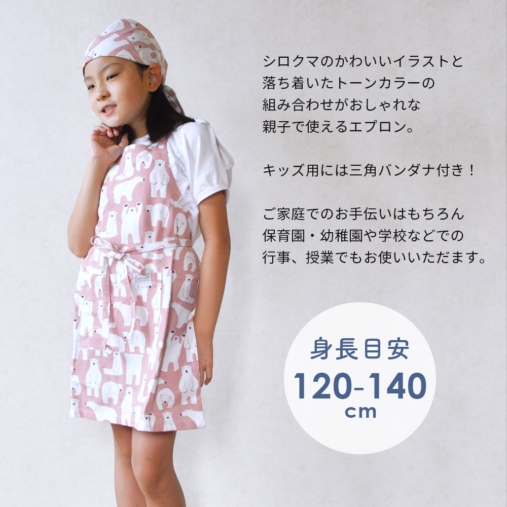 エプロン 親子 セット キッズ 120cm?140cm 三角巾付き おしゃれ シロクマ柄 しろくま かわいい 男の子 女の子 首ゴムタイプ 着やすい フリーサイズ 大人用 子供用 コットン 綿 幼稚園 保育園 小学生 習い事 家庭科 入園 入学 保育士 ギフト プレゼント 贈り物