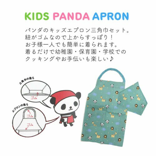 エプロン 子供 キッズ 三角巾セット かわいい パンダ エプロン 楽チン かぶるだけ ゴム スタイル 緑 パンダとアニマル S 110cm EP-066 8B サイズ:S110cm、M130cm、 ※ 参考までにSは未就学児 幼稚園 保育園児くらい Mが小学生 低学年くらいです。