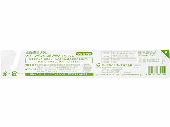 【検索用キーワード】第一三共 だいいちさんきょう ダイイチサンキョウ クリーンデンタル歯ブラシ3列スリムやわらかめ クリーンデンタルハブラシ3レツスリムヤワラカメ くりーんでんたるはぶらし3れつすりむやわらかめ 歯ブラシ はぶらし ハブラシ 1本 1 やわらかめ 柔らかめ ヤワラカメ デンタルケア 予防歯科 歯磨き はみがき ハミガキ オーラルケア オーラルケア 歯ブラシ RPUP_02歯周病対策に