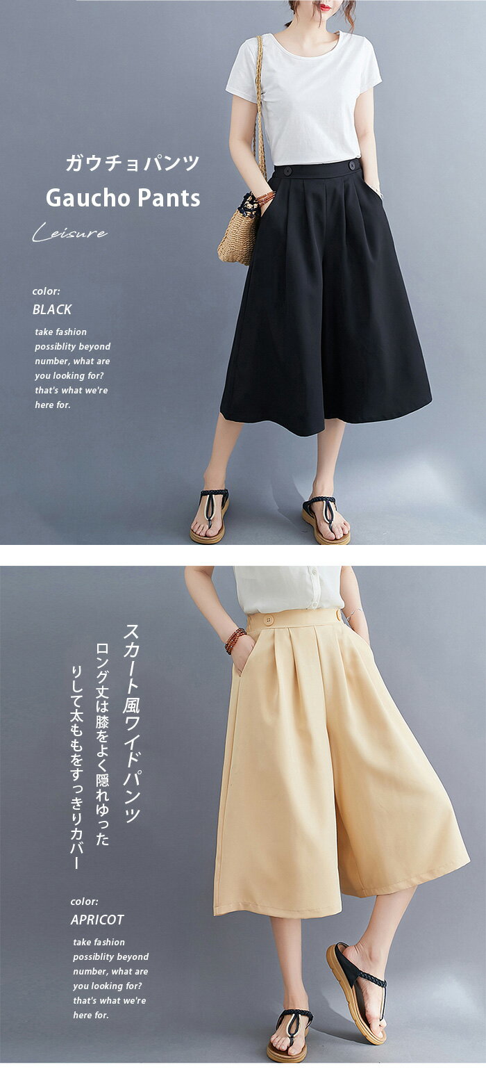 クーポン利用で2,012円 即納 パンツ 七分丈 ガウチョパンツ レディース キュロット スカーチョ 膝丈 ワイドパンツ 大きいサイズ ボトムス 体型カバー ハイウエスト ゴム フレアパンツ ゆったり チノパンツ 薄手 シャリ感 楽チン 着痩せ 脚長 大人 カジュアル バックシャン 春