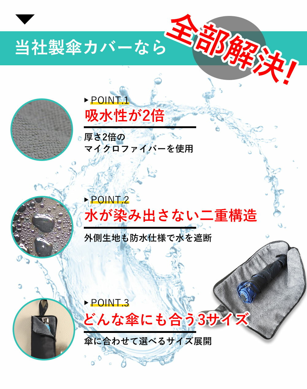 メーカー希望小売価格はメーカーカタログに基づいて掲載しています 商品詳細 【手軽に持ち運べて超便利!傘カバーって?】 中は厚みが2倍になったマイクロファイバーでしっかりと傘の水滴を吸水! 濡れた折りたたみ傘をカバンの中に入れなきゃいけないそんなシーンにぜひご使用ください! 傘カバーだけじゃない?! 大きめの水筒やペットボトルも入るので、結露がすごいペットボトルのペットボトルホルダーとしてもご使用いただけます。