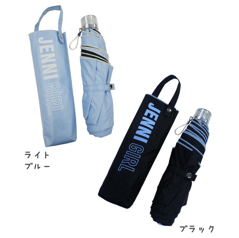 ガールズ 雨晴兼用 折り畳み傘 折傘 折りたたみ傘 JENNI ジェニィ 55cm ライトブルー ブラック UVカット キッズ 傘 子供用 キッズ 女の子 小学生 可愛い かわいい おしゃれ シンプル グラスファイバー骨 丈夫 通学 入学