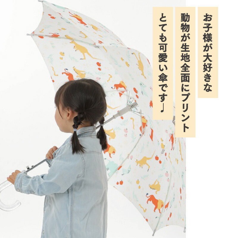 ・お子様が大好きな動物柄が生地全面にプリント、 14種類の動物がプリントされて とてもかわいい傘に仕上がりました。