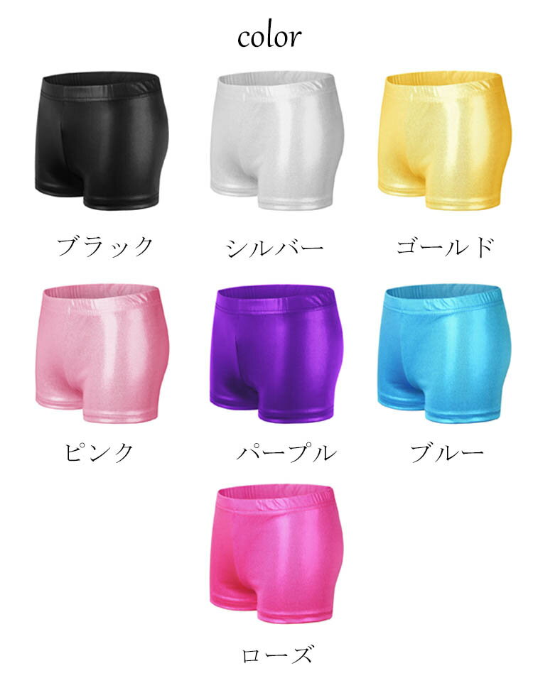 ダンス衣装 メタリック キッズ ダンスパンツ スパンコール ヒップホップ 光沢 ショートパンツ スポーツインナー ステージ衣装 ジュニア ジャズダンス ガールズ ボーイズ ストレッチ素材 股上深め ウエストゴム シルバー ピンク レッド ブルー ブラック ゴールド 110-160cm