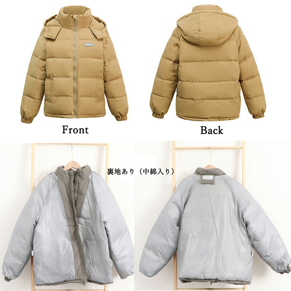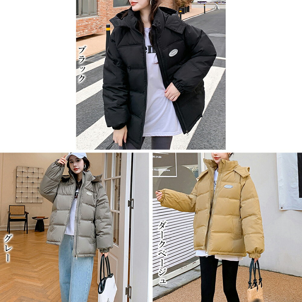 黒 グレー 濃いベージュ L XL 軽くてボリューム感のある、フード付きエコダウンジャケットです。