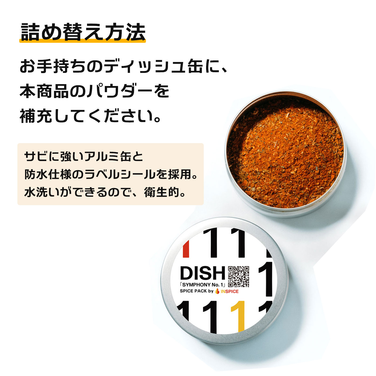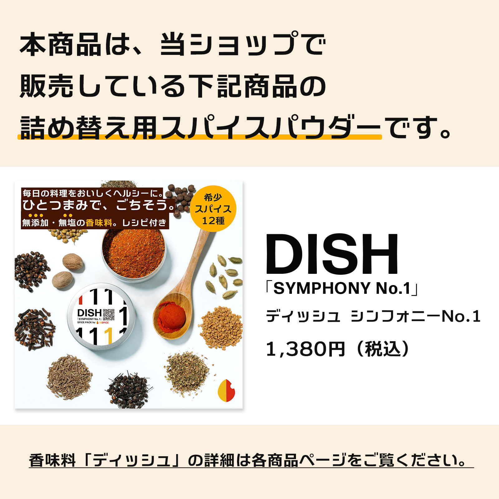 DISH(ディッシュ シンフォニーNo.1)詰め替え用 レシピ付き☆ スパイスミックス 12種 スパイス カレー 香辛料 調味料 香味料 ハンバーグ ステーキスパイス パウダー 無添加 ヴィーガン 万能調味料 無添加調味料 美味しい 肉 ステーキ バーベキュー キャンプ アウトドア