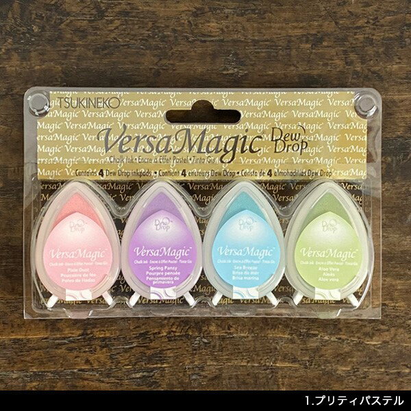 < 詳しくはこちら >Versa Magic Dew Drop 4色セット しずく型インクパッド4色セット 裏うつりしにくく、 手帳におすすめの インクパッド4色セットです。