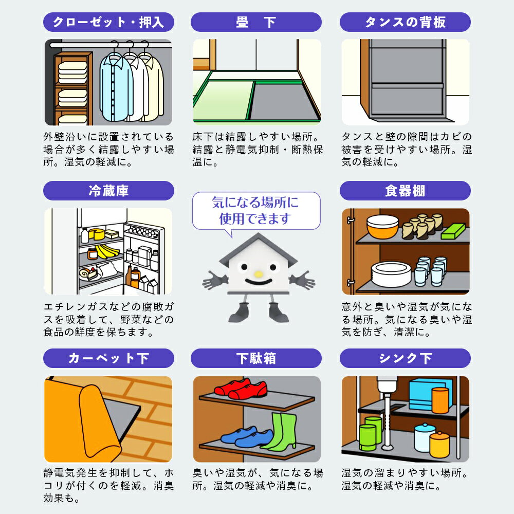 お好きなサイズにカットして臭いや湿気が気になるところに敷いてご使用ください。