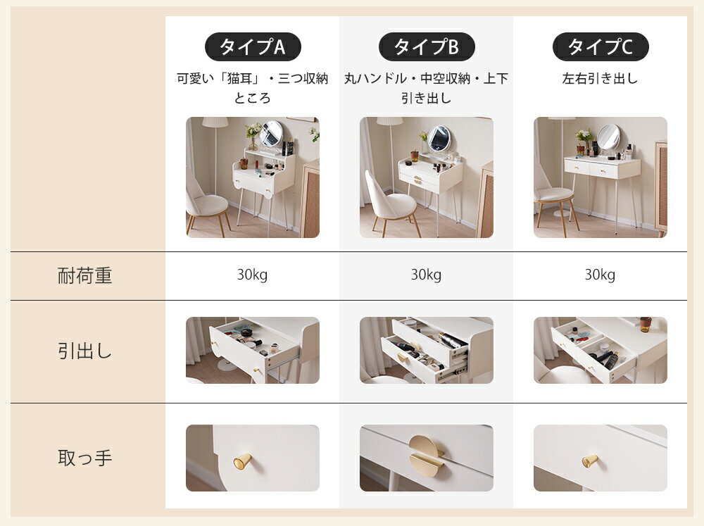 ドレッサー テーブル 化粧台 3タイプ メイク台 デスク 収納付 一面鏡 360°回転鏡 座デスク ミシン台 鏡台 おしゃれ お姫様 大量収納 化粧品収納 子ども 引き出し 一人暮らし おしゃれ 新生活応援 コンパクト 猫耳 化粧デスク 【おすすめ商品】 商品価格:13,280円 レビュー件数:0件 レビュー平均:0(5点満点) 楽天で購入 トップページへ