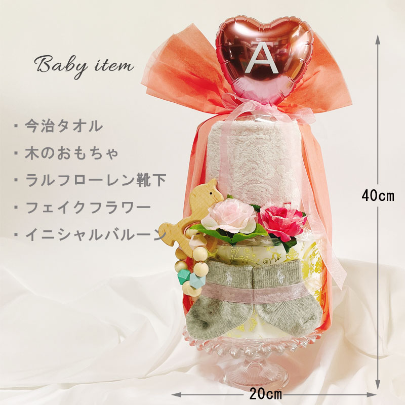 ※今治タオルとラルフローレンのお洒落なおむつケーキ ●カラー ・ブルー、イエロー、ピンク ●部材 ・紙おむつ ・今治アラベスクミニタオル ・ラルフローレン靴下 ・木のおもちゃ ・バルーン 商品の注意事項 【おむつメーカーと枚数】 おむつの素材 ・紙おむつ 「多くの産院でも使われているパンパース」 おむつのサイズはS,M,Lからお選びいただけます ※テープS・Mサイズの場合25枚 ※パンツM・Lの場合20枚 ☆